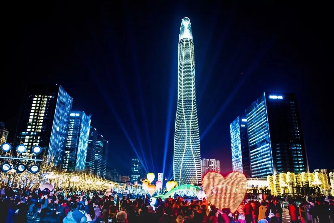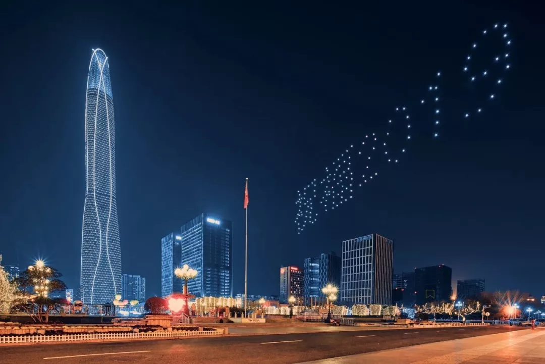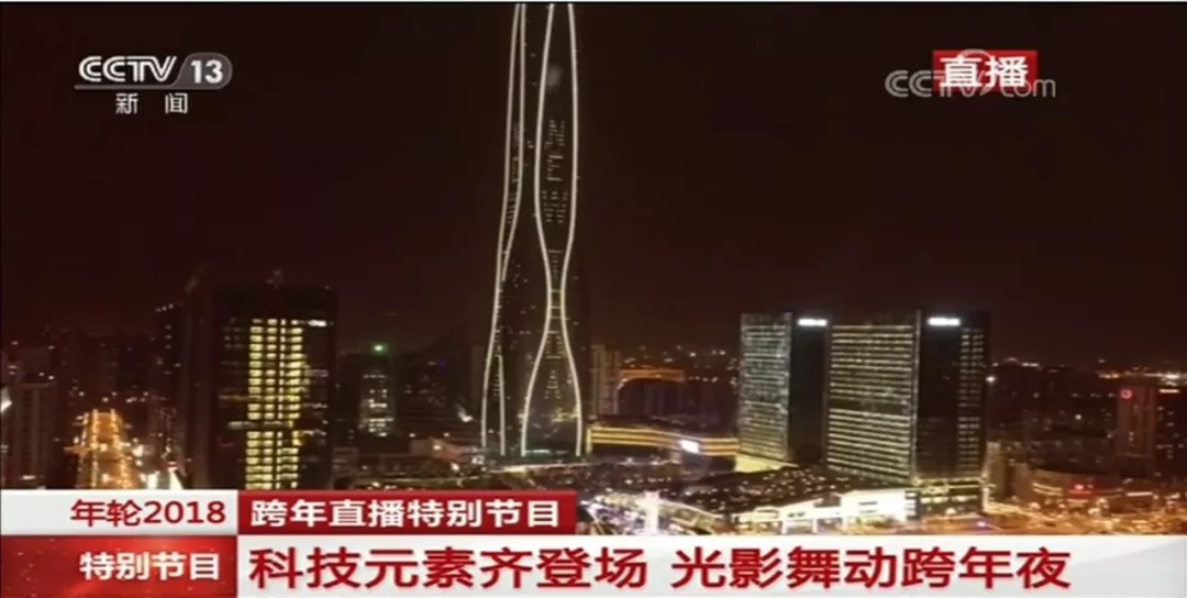 天津周大福金融中心项目自开工建设以来就备受瞩目,中央电视台新闻频道对本次亮灯跨年灯光秀与无人机表演进行了直播联动。