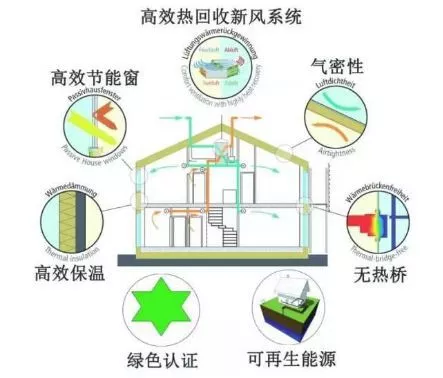 被动式超低能耗建筑:指适应气候特征和自然条件,通过保温隔热性能和气密性能更高的围护结构,采用新风热回收技术,并利用可再生能源,提供舒适室内环境的建筑。