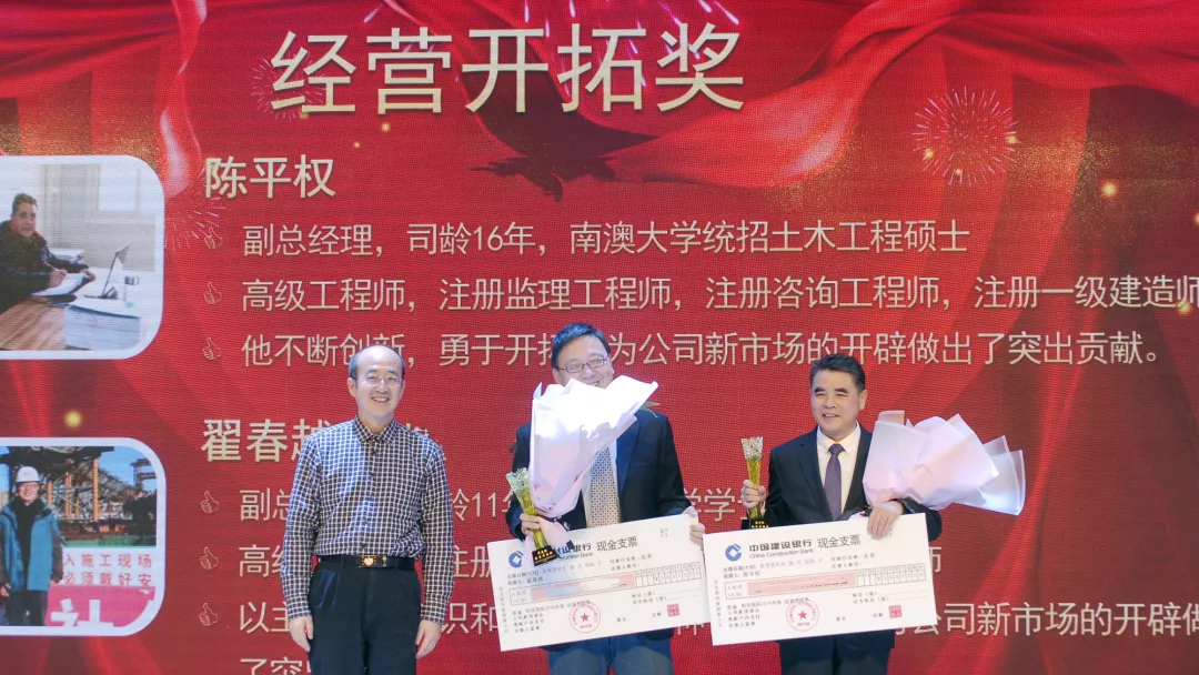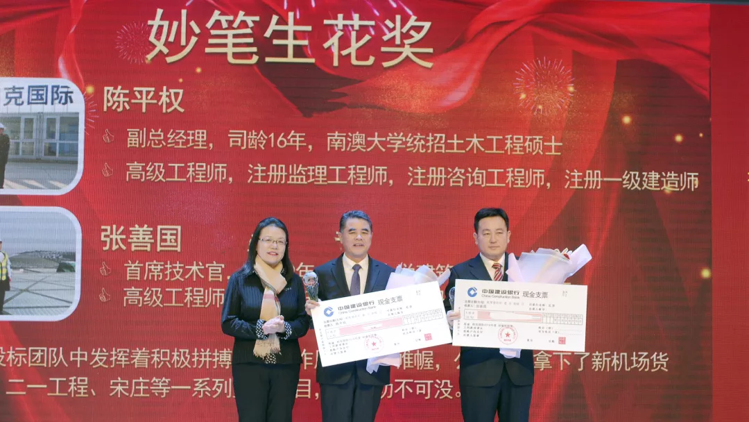 陈平权、张善国,在投标团队中发挥着积极拼搏的带头作用,公司顺利拿下了新机场货运中心、二一工程、宋庄等一系列重大项目,他们功不可没。